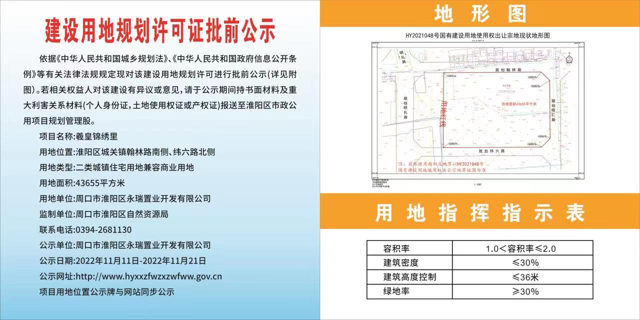 羲皇锦绣里建设项目建设用地规划许可批前公示
